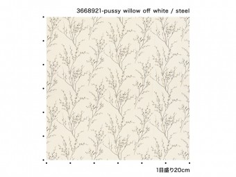 オフホワイトの背景とスチールトーンの Pussy Willowが空間をエレガントに演出します。